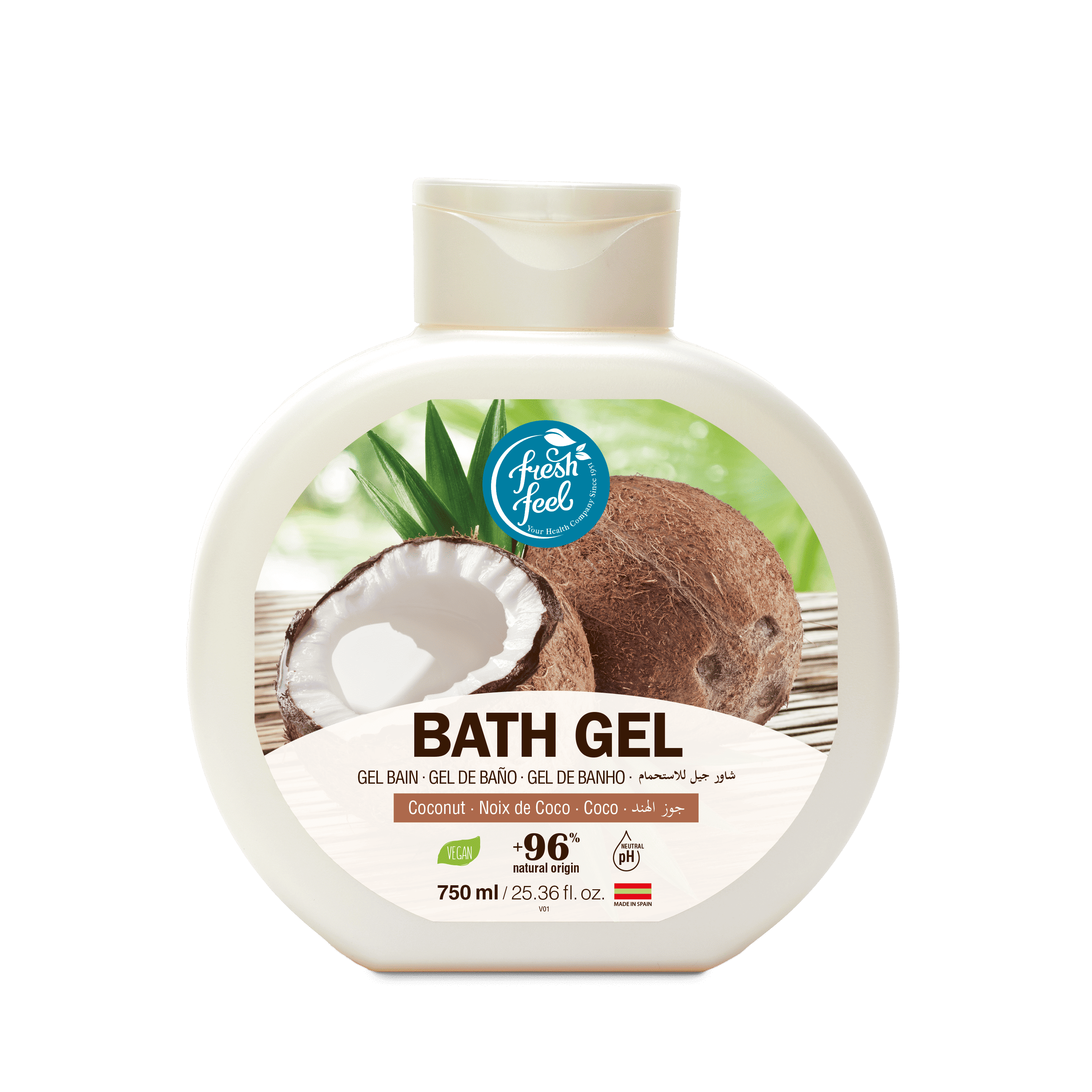 To enjoy the moment of calm and relaxation while you shower, use coconut moussel shower gel contains coconut extract which will leave your skin hydrated and smooth. With high intensity of foam and will leave a pleasant fragrance.